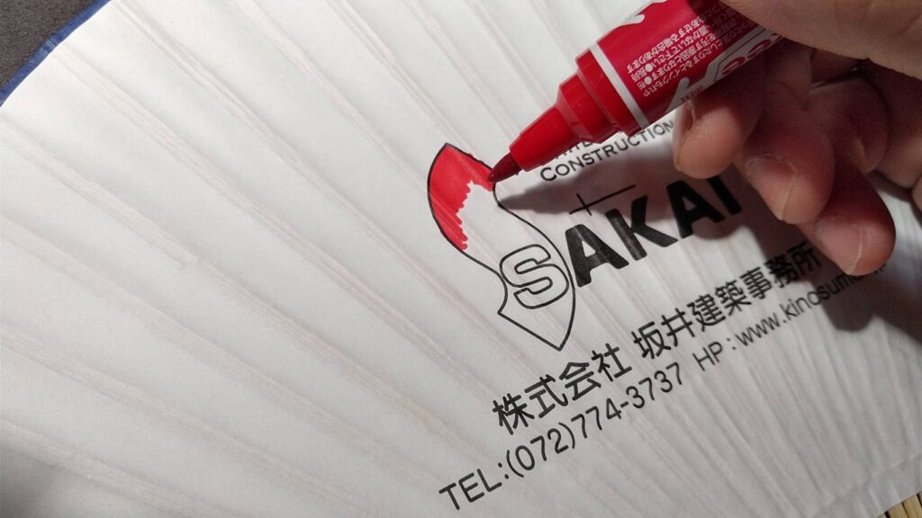 実はこの団扇の裏、〔もはや表の〕弊社のロゴマークなのですが、