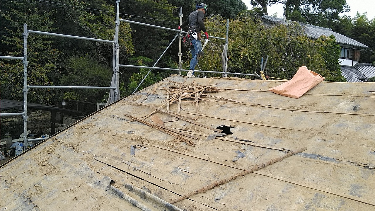 長い年月空き家として放置されていた為か、瓦を支える野地にも痛みが有り、