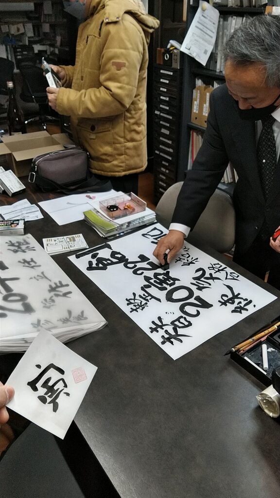 帰社した後、こちらも恒例行事となる「書初め」も行います。