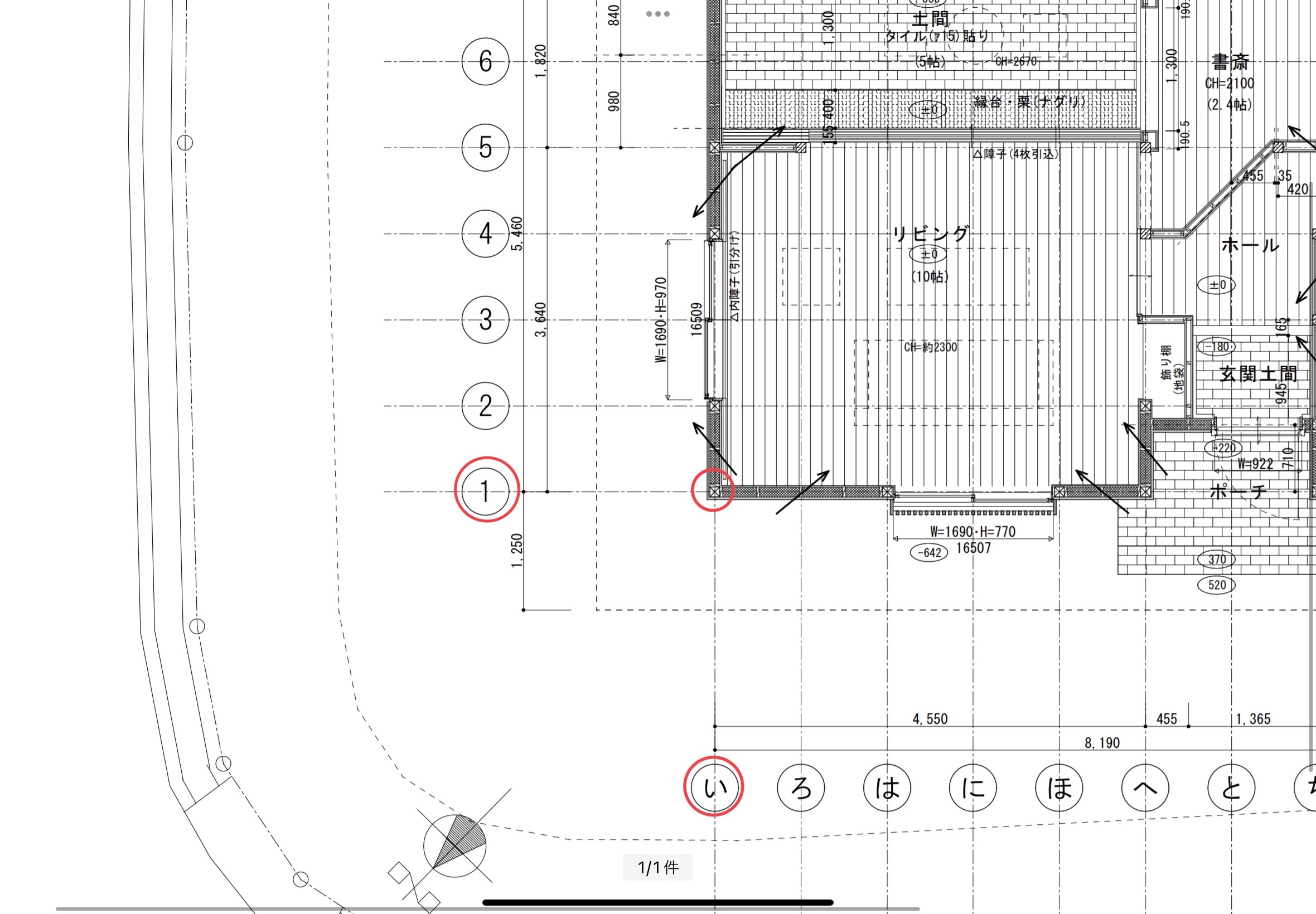 建物の柱位置を示す番付において一番角にあたる、一番最初に建てる柱にあたります。
