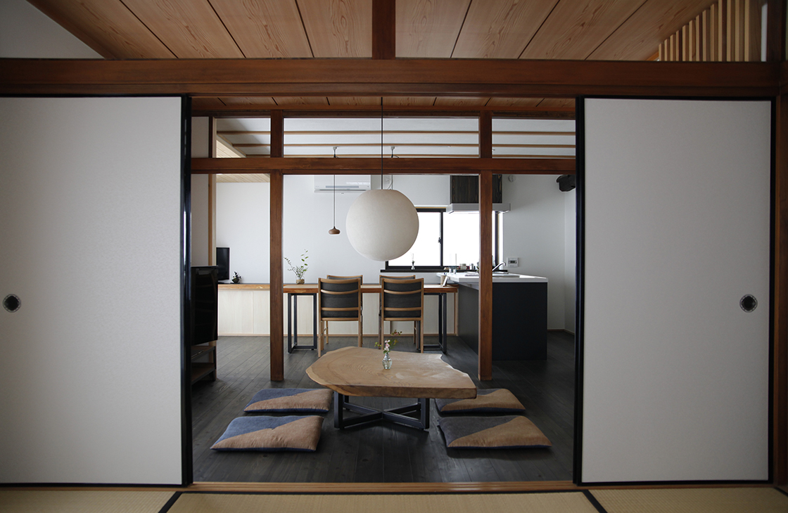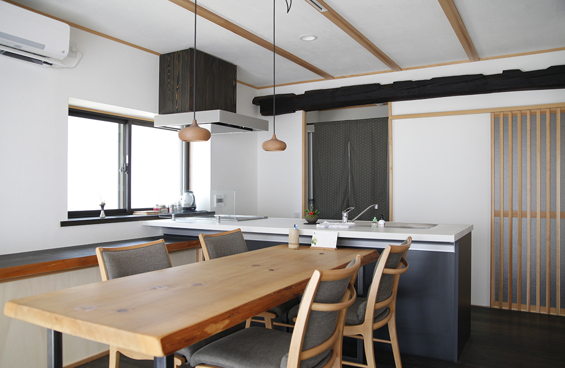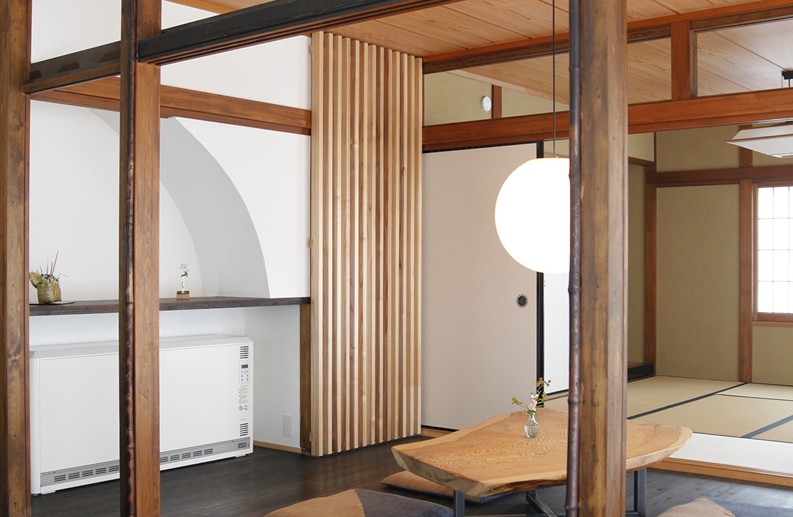 本物の古民家に使われていた古材を使い