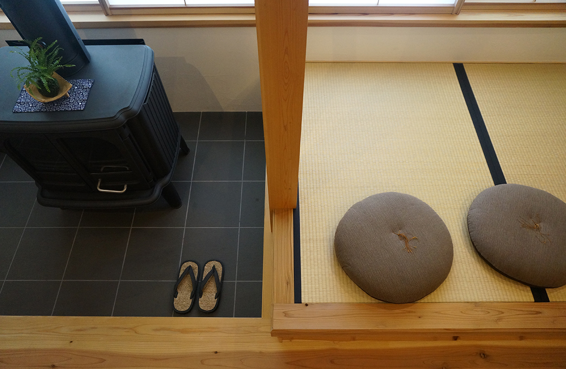 ストーブ土間に集まる家